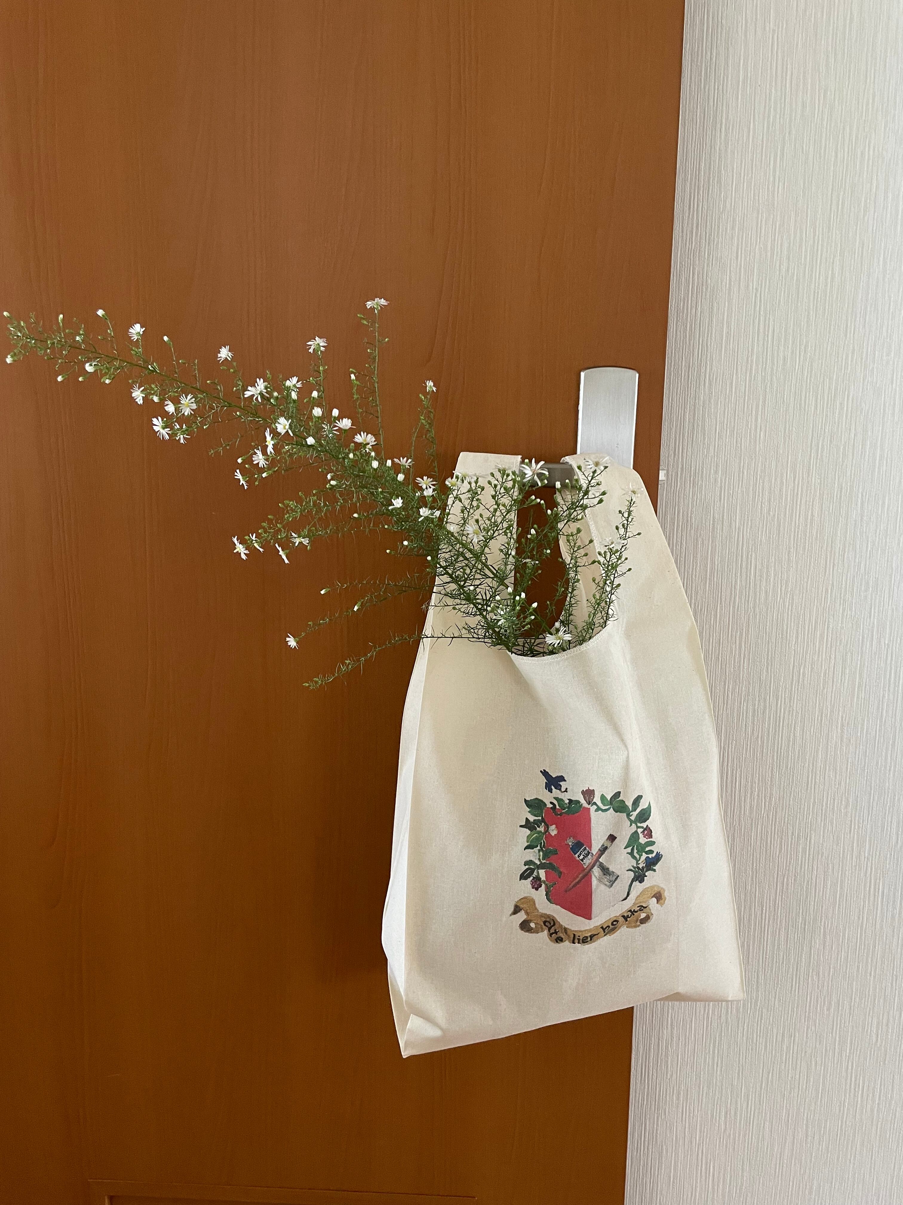 アトリエのロゴマークをプリントしたマルシェバッグ。
