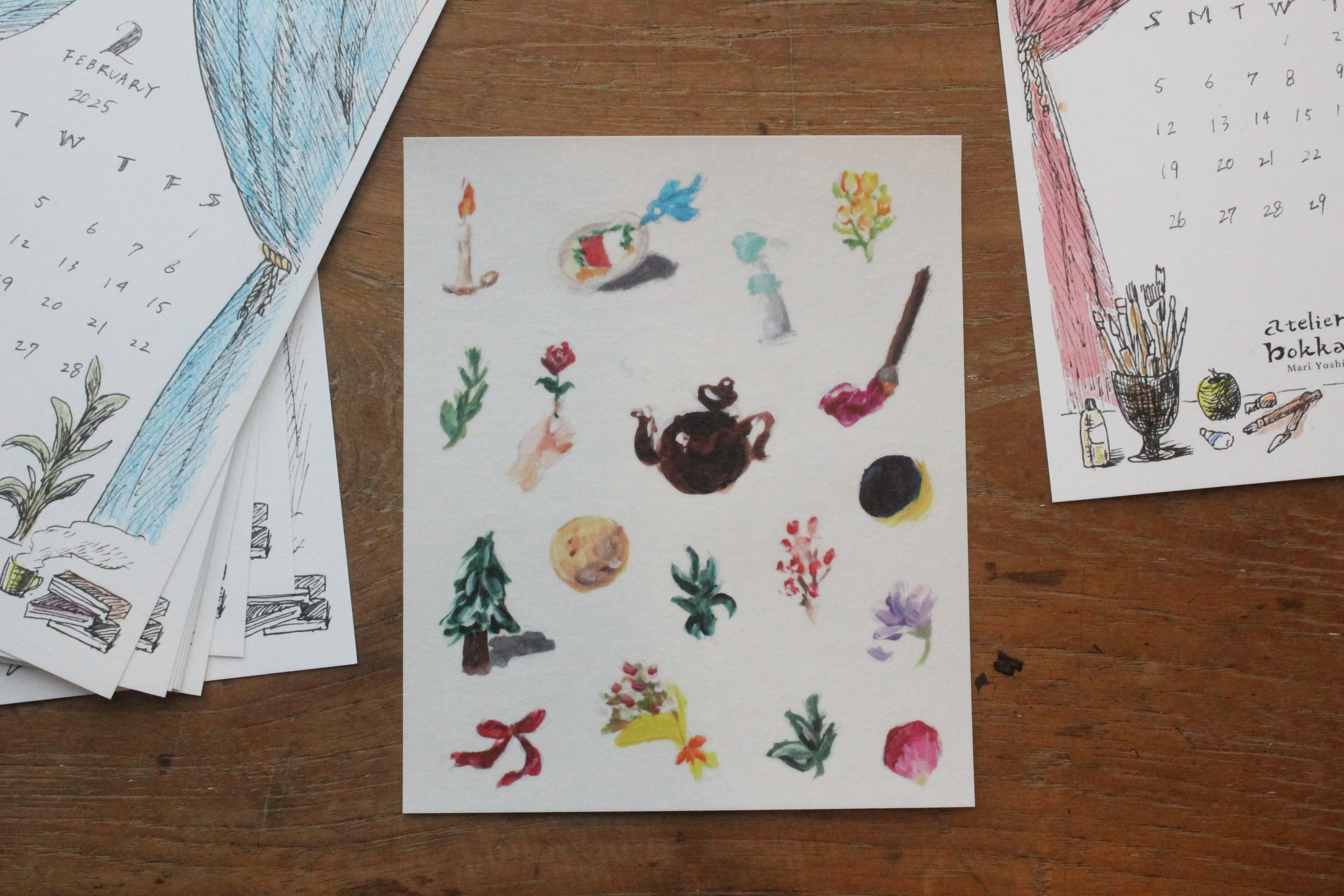 アトリエの雰囲気を線画で表現し、ロゴ以外の文字は全て手書きです。(イラストはプリント)